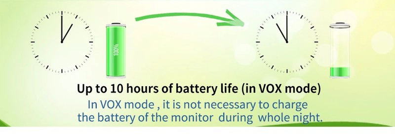 14, pas besoin de charger la batterie du moniteur pendant toute la nuit en mode Vox