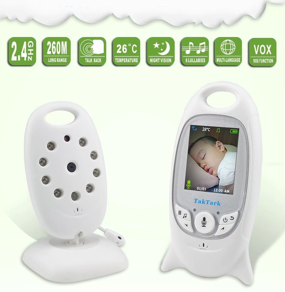 Babyphone Vidéo Sans Fil, Écran Couleur 2&Quot;, Vision Nocturne Led Ir Caméra De Sécurité Pour Bébé Communication Bidirectionnelle Surveillance De La Température, Avec 8 Berceuses