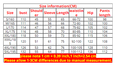 Informations sur la taille asiatique (unité: cm):