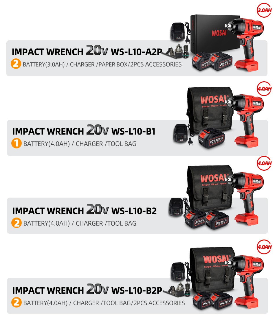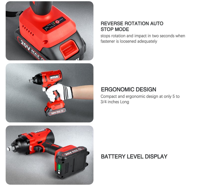 Wosai – Clé À Chocs Électrique Avec Batterie Li-Ion Rechargeable, Outils Électriques Sans Fil De 1-2 Pouces, Pneus De Voiture Sans Balais 20 V, 600 N.M