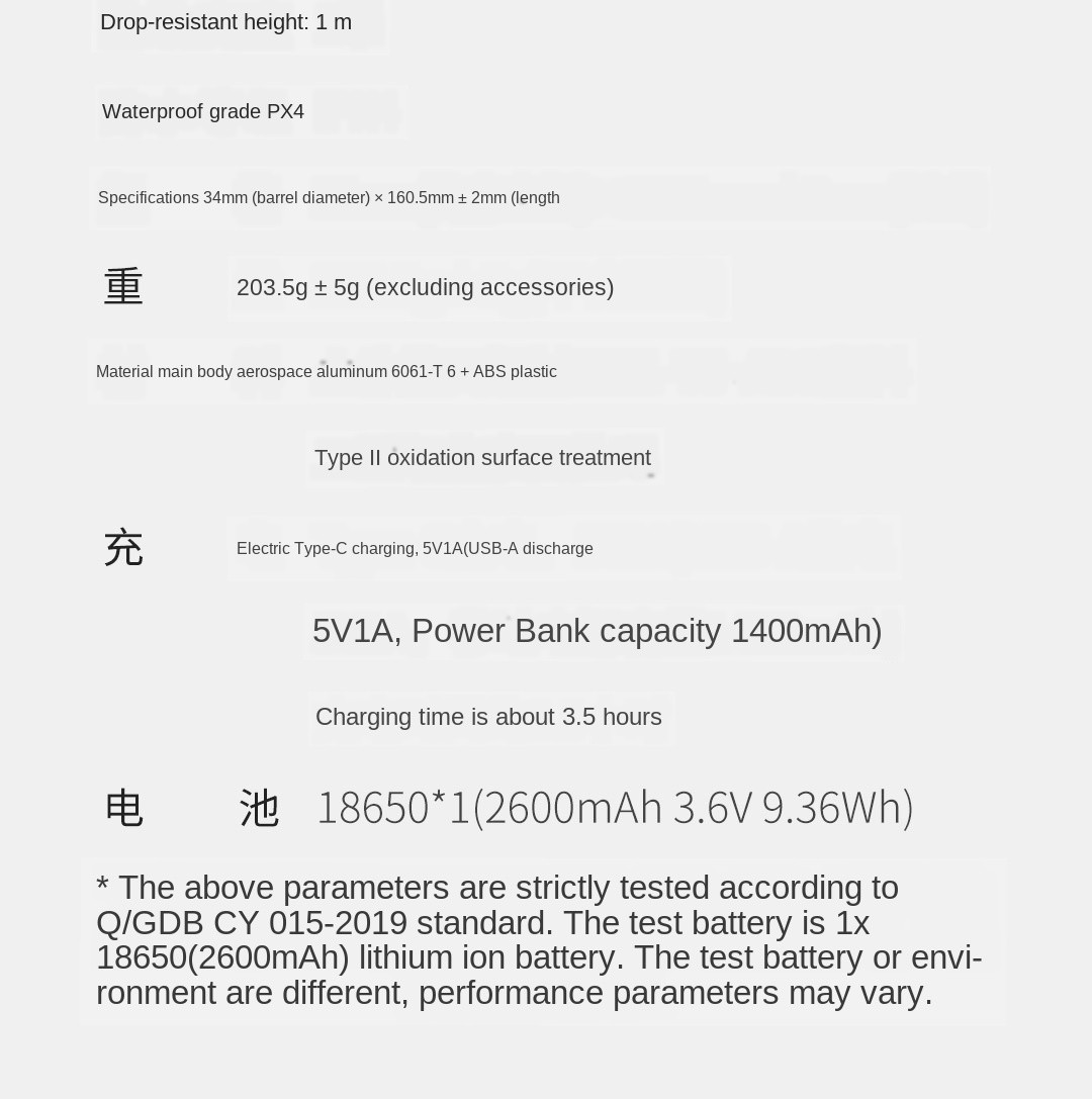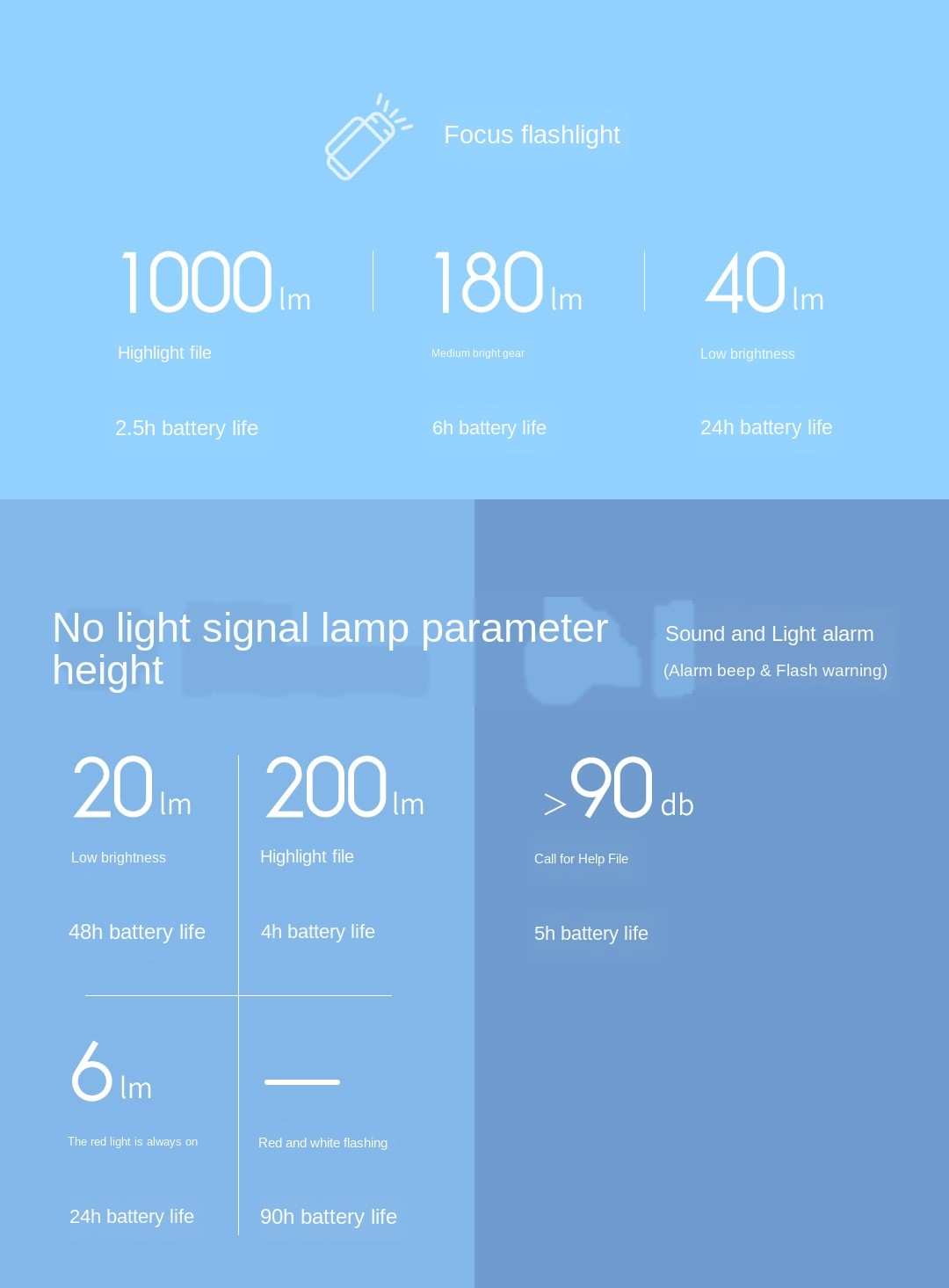 1000lm-temps d'endurance 2.5h-Distance d'irradiation 240m