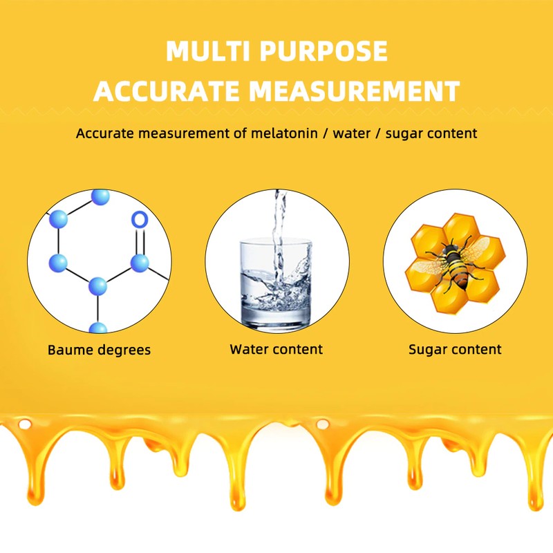 Plage de mesure: 58-90% Brix ou 58-92% Brix, 38-43 Be °, 12-27% eau.