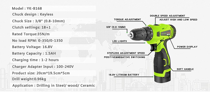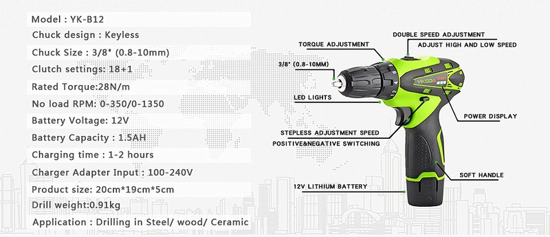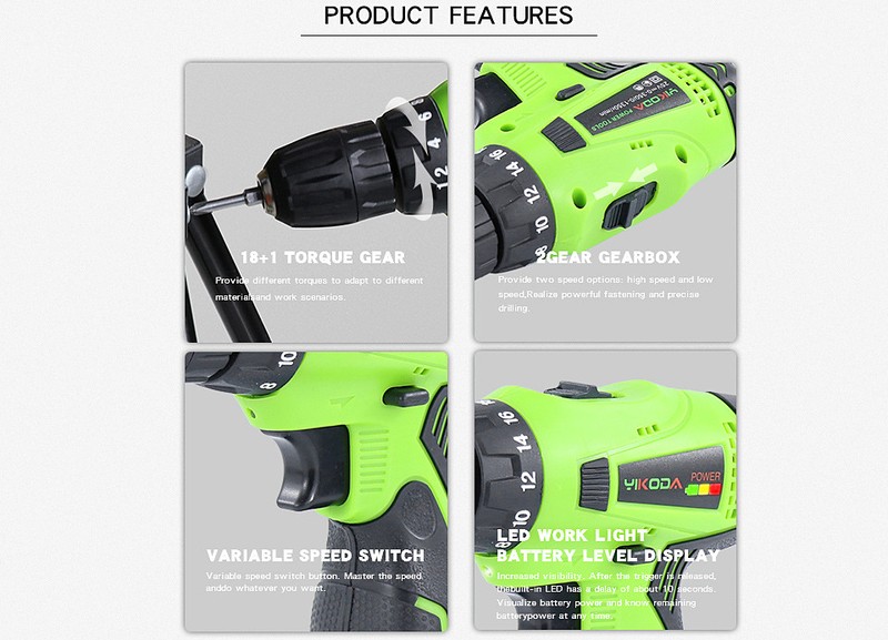YIKODA tournevis électrique 12V/16.8V/25V perceuse sans fil batterie au Lithium Rechargeable Mini outils de pilote électrique sans fil