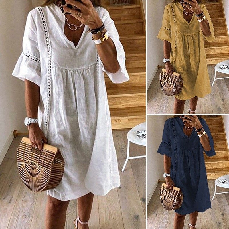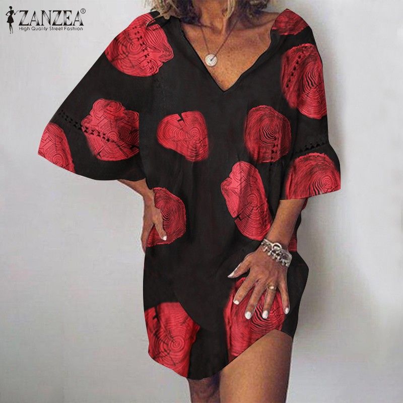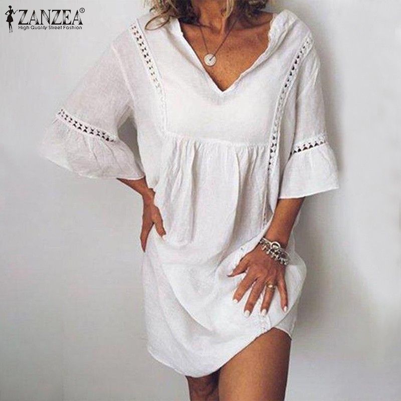 Zanzea – Robe D'Été En Dentelle Pour Femmes, Manches Évasées, Courte Style Bohème Col En V Chemise De Soirée, Le plus récent