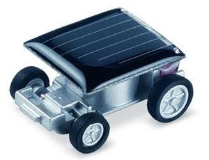 La cella solare genera energia elettrica dal sole che guida un motore miniatura che gira le ruote.