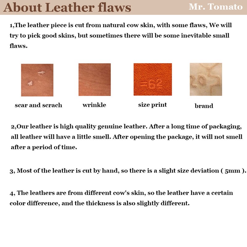 يرجى ملاحظة أن لون المنتج قد يختلف قليلا عن الصور المعروضة على الموقع بسبب سطوع الشاشة وسطوع الضوء. والعيوب ربما موجودة ناتجة عن لدغات أو خدوش أو جروح تحملها البقرة خلال حياتها في الحقول لكل جلد الحبوب الكاملة