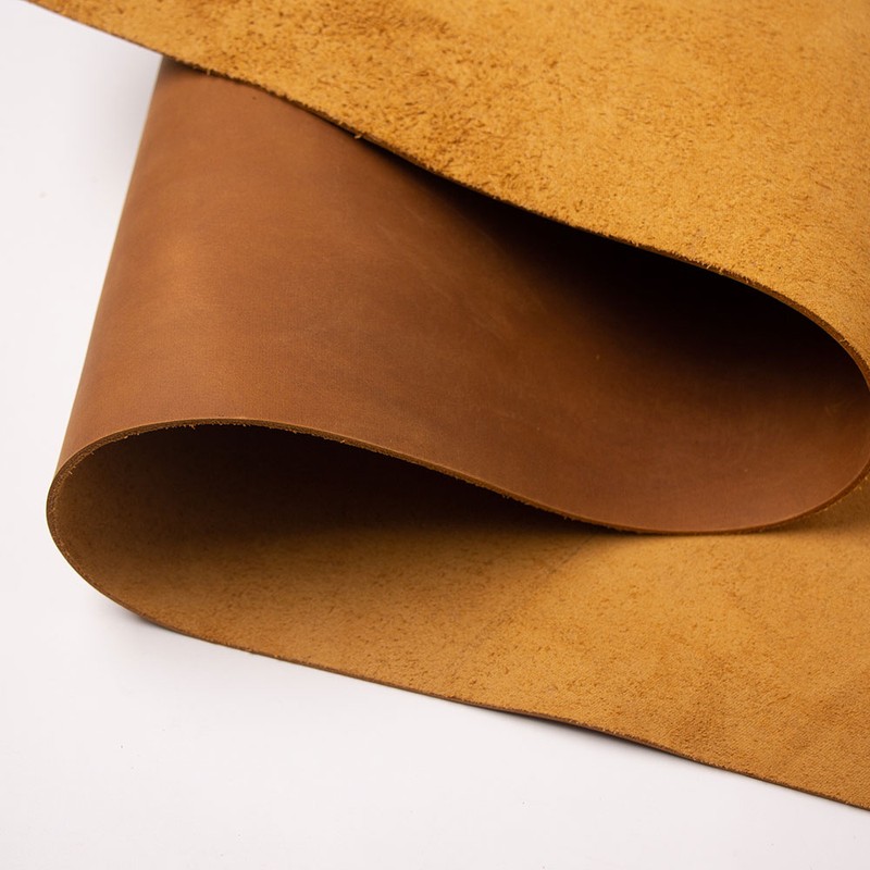 جلد طبيعي مجنون الحصان الجلد البني المدبوغة جلد البقر الأصفر البني جلد طبيعي قطعة سميكة جلود البقر الطبقة الأولى 1.8 إلى 2 مللي متر