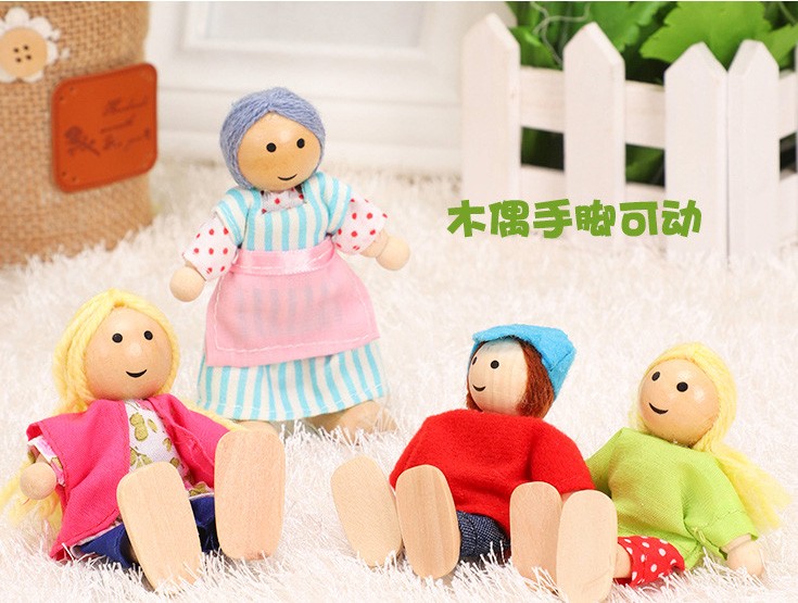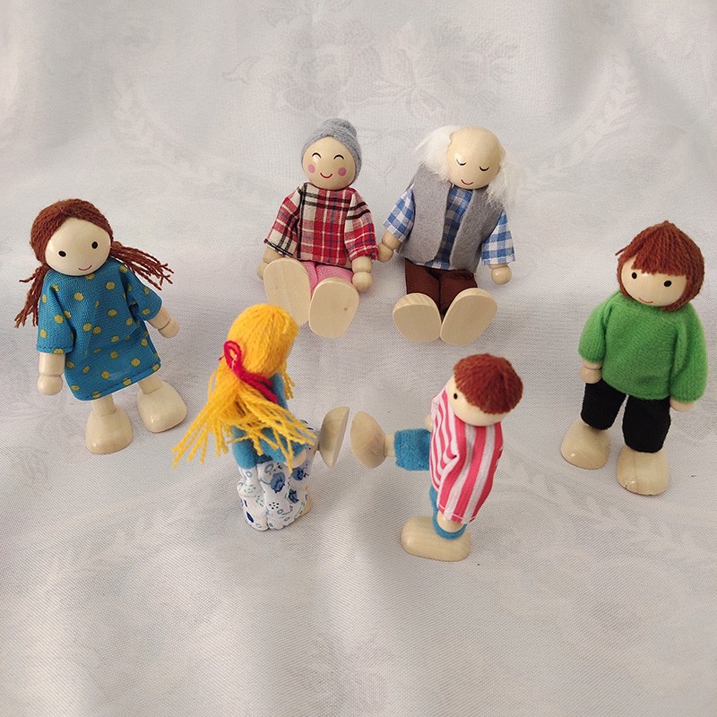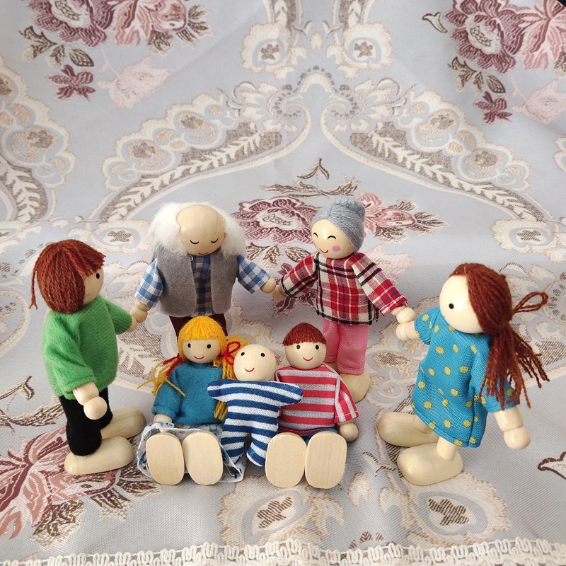 子供のためのミニチュア家族の人形,6人のためのミニチュア人形,木製の関節人形,子供のためのおもちゃ