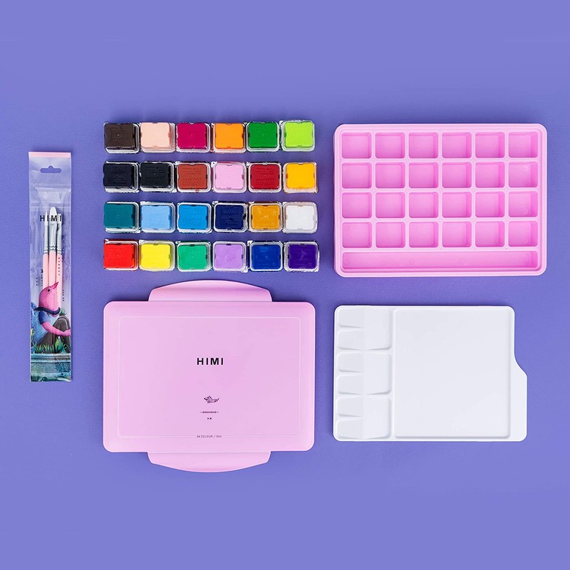 Himi Miya – Ensemble De Peinture Gouache, 18/24 Couleurs, 30Ml, Étui Portable Au Design Unique Avec Palette Et 3 Pinceaux Pour Artiste