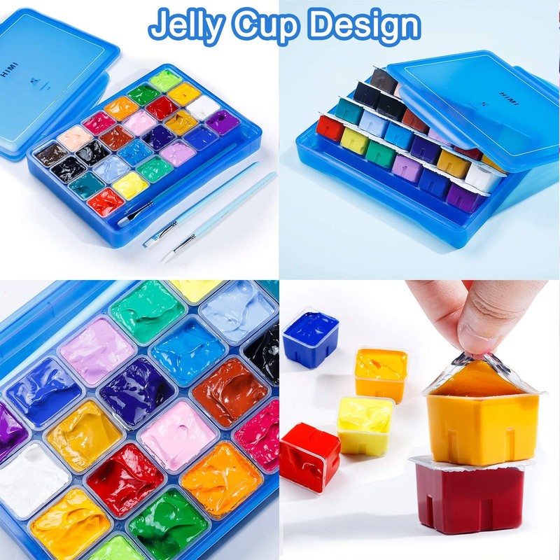 HIMI Gouache kit de peinture 24/18 couleurs (30 ml/pièce) ensemble de peinture conception Unique de tasse de gelée peintures Non toxiques pour artiste, artistes amateurs et enfants, idéal pour la peinture sur toile pour cadeau de nouveauté