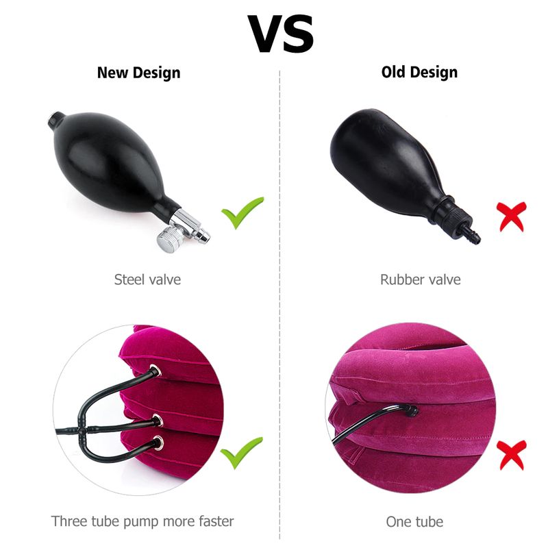 БЫСТРАЯ СИСТЕМА НАКАЧКИ ВОЗДУХА! В отличие от других устройств, наша регулируемая подушка для тракционного вытяжения шеи имеет 3 трубки, благодаря чему ее легко надуть в соответствии с вашими пожеланиями, а воздушный клапан НЕ ДАЕТ ЕЙ СДУВАТЬСЯ. ИСПОЛЬЗОВАТЬ УСТРОЙСТВО ОЧЕНЬ ПРОСТО.