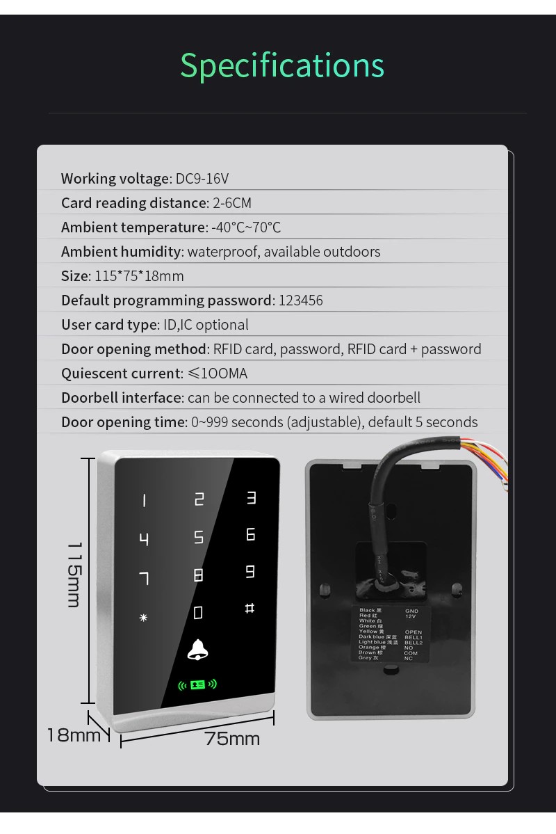 防水タッチスクリーンアクセス制御システム,125KHz 13.56MHz,RFID,スタンドアロン