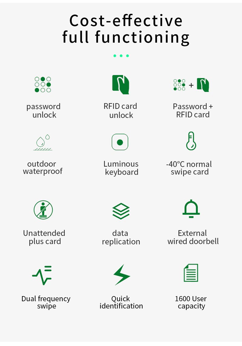 この製品は非接触近接カードとパスワードアクセス制御オールインワンマシンです。 Emおよびmifareカードをサポートし、wiegand入出力をサポートします。 現在、最先端のシングルドアコントローラーの1つです。 ハイエンドのオフィスビル、住宅街、その他の公共の場所で広く使用できます。