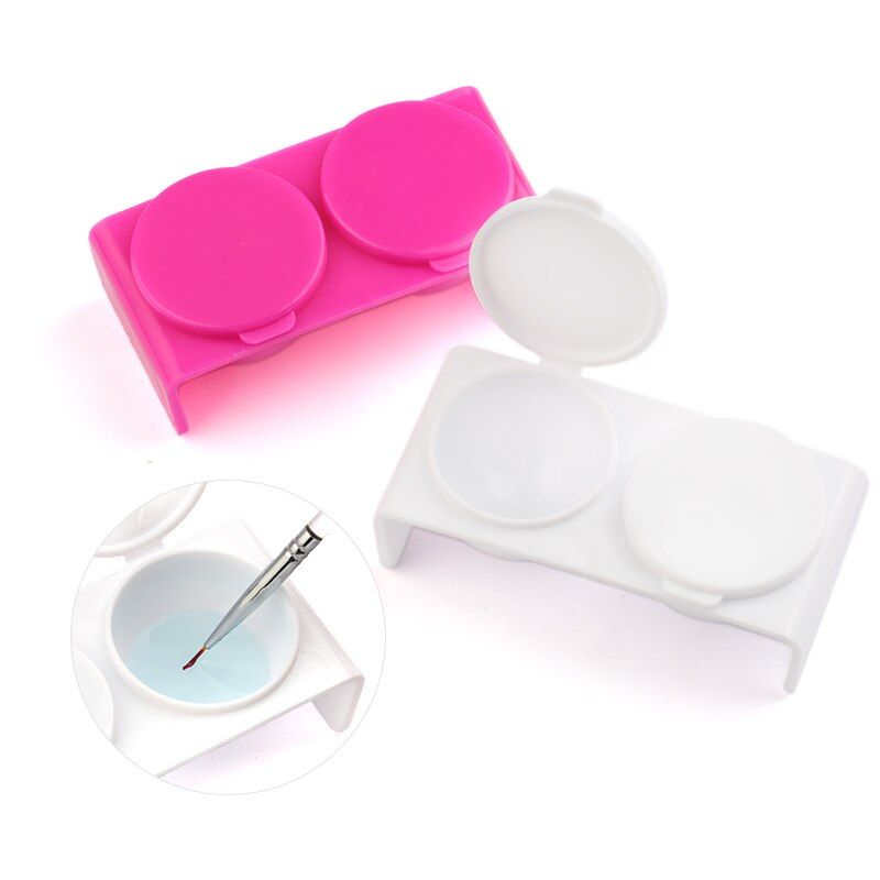 1 Pz Doppio Piatto Contenitore Per Unghie Contenitore Di Plastica Tinta Ciotola Con Copertura Attrezzature Per Nail Art Per Strumento Di Punte Di Gel Uv In Polvere Liquida Acrilica