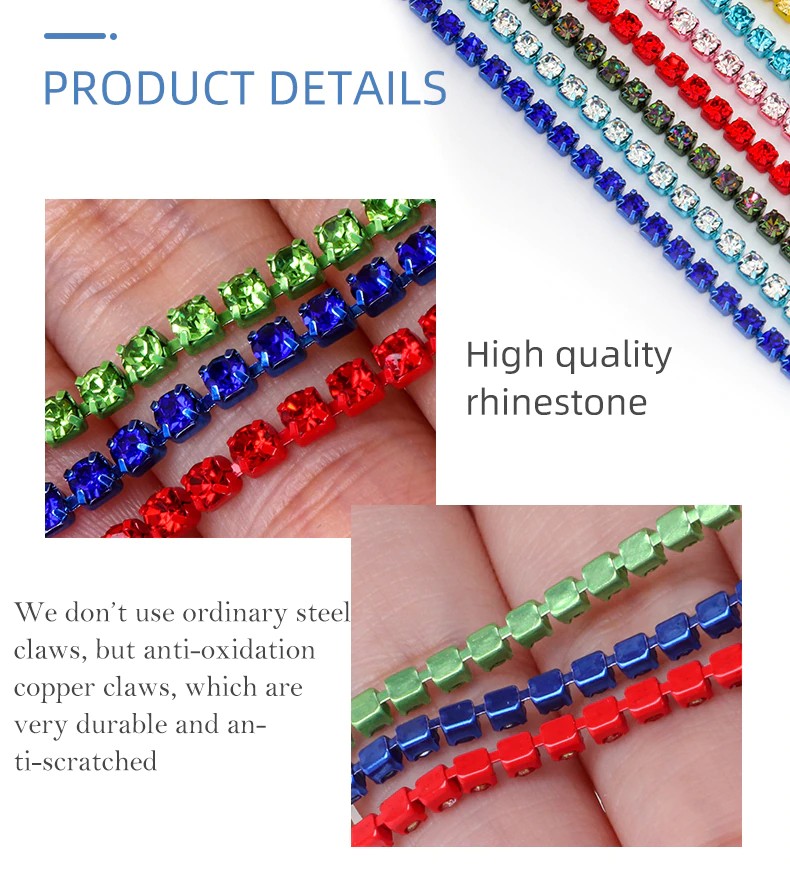 Xichuan 1 Yard 10 Colori Artiglio Strass Ss6 Ss8 Cristallo Nappa Vestiti Fai Da Te Orecchini Accessori Perline Diamante Strass Catena