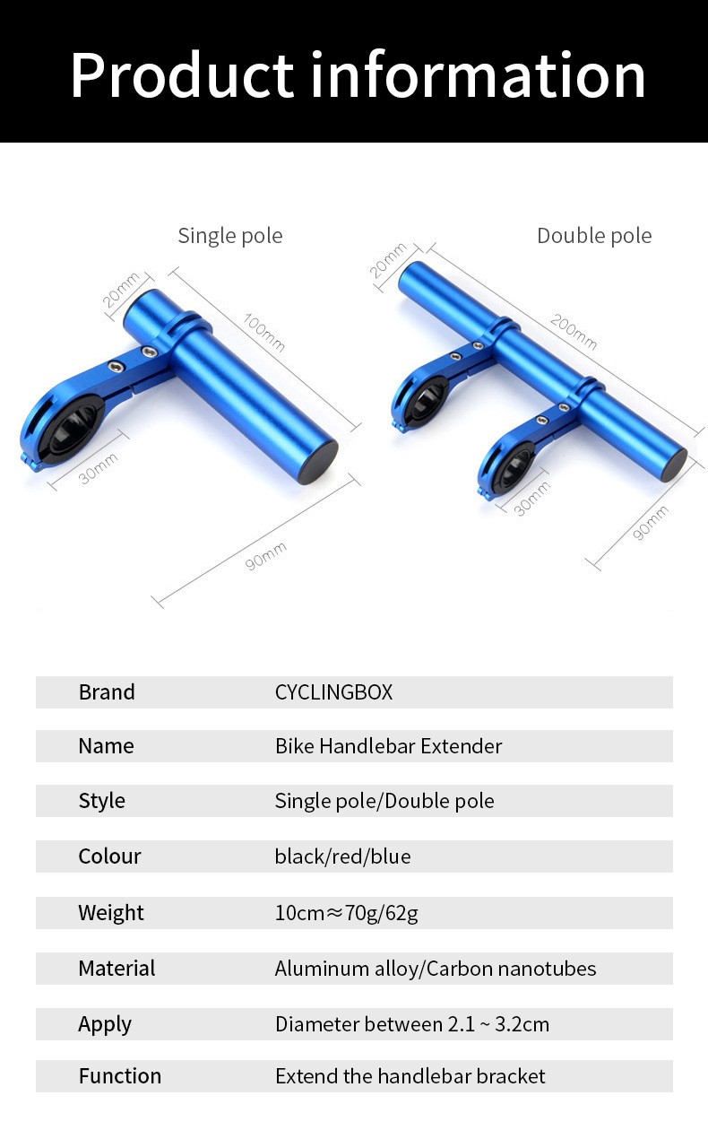 10/20/30Cm Tubo Bicicletta Manubrio Extender Mount Mountain Mtb Bike Ciclismo Staffa Faro Lampada Supporto Torcia Accessori