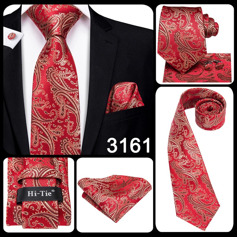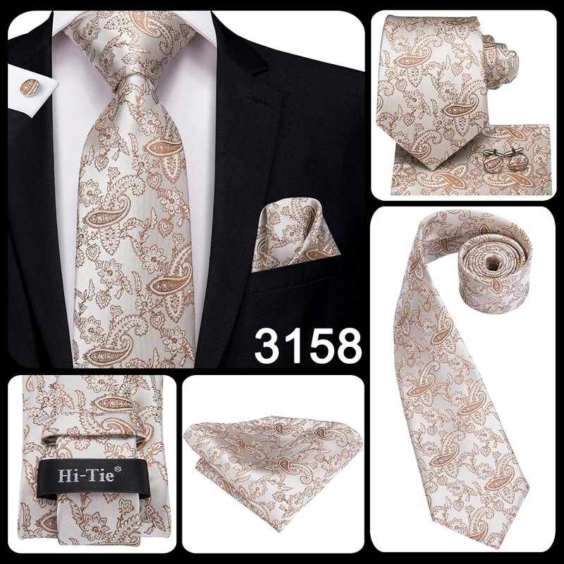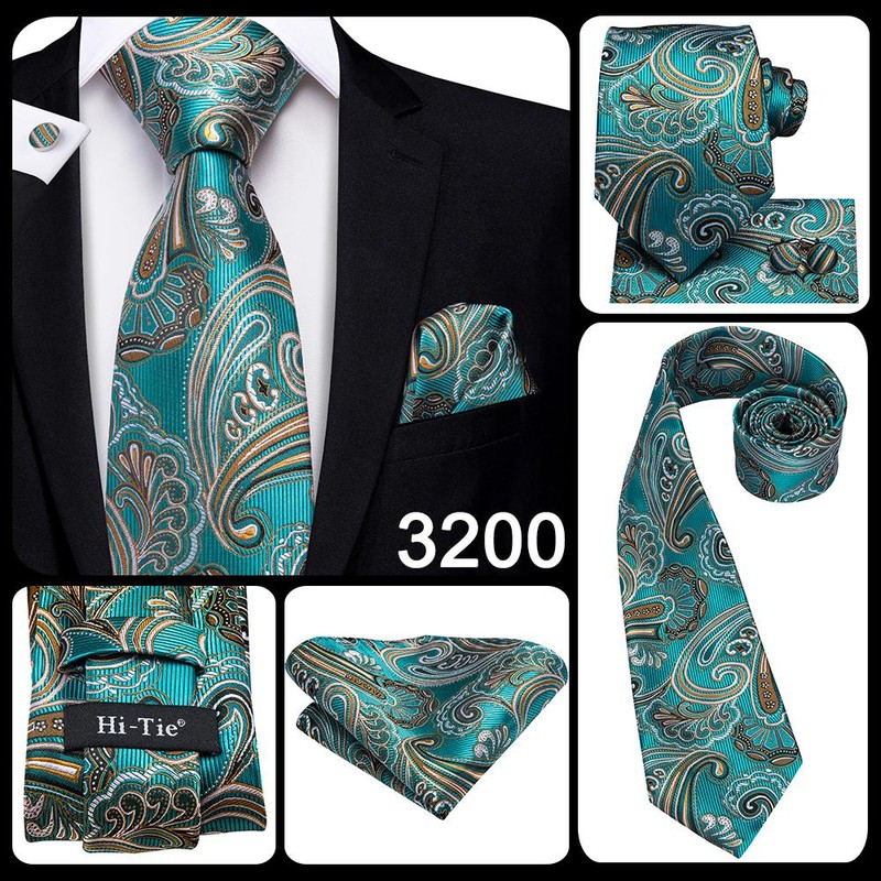 Hi-Tie 100% seta cravatte da uomo di lusso cravatte floreali in oro nero cravatta Paisley tasca gemelli quadrati Set cravatta da uomo per feste di matrimonio