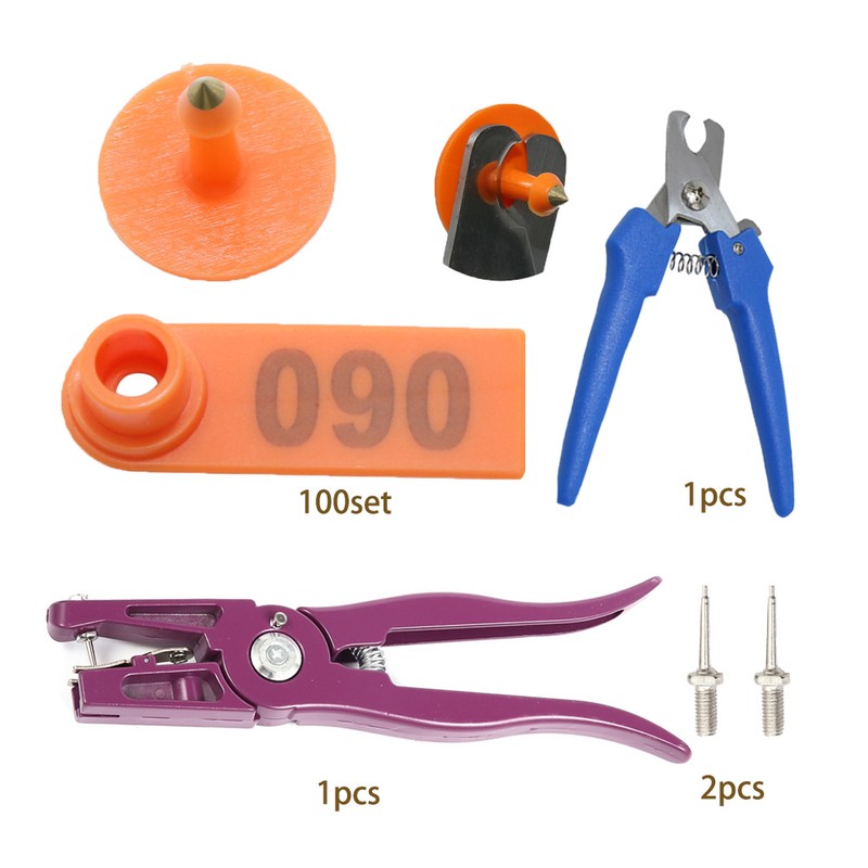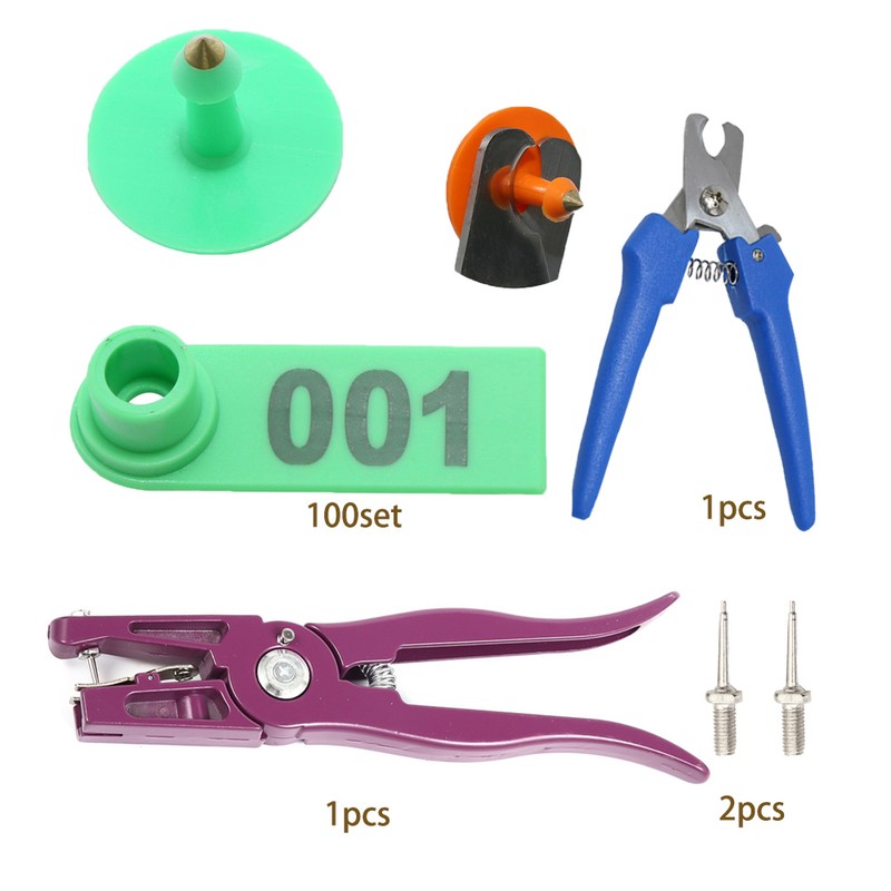 100Pc orecchio tag + 2Pc orecchio tag ago + 1Pc viola orecchio tag pinza + 1Pc sforbiciare orecchio tag pinza