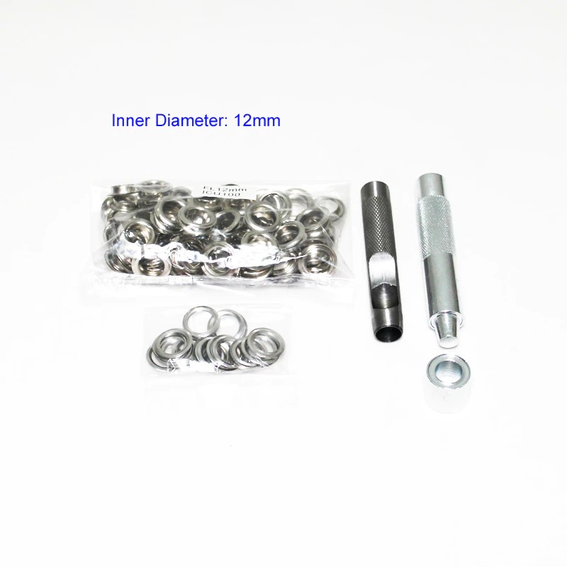 100Set Occhielli In Metallo Argento 4Mm 5Mm 6Mm 8Mm 10Mm 12Mm 14Mm 20Mm Con Strumento Di Perforazione Per Borsa Per Scarpe Occhielli Per Cintura In Pelle Passacavo