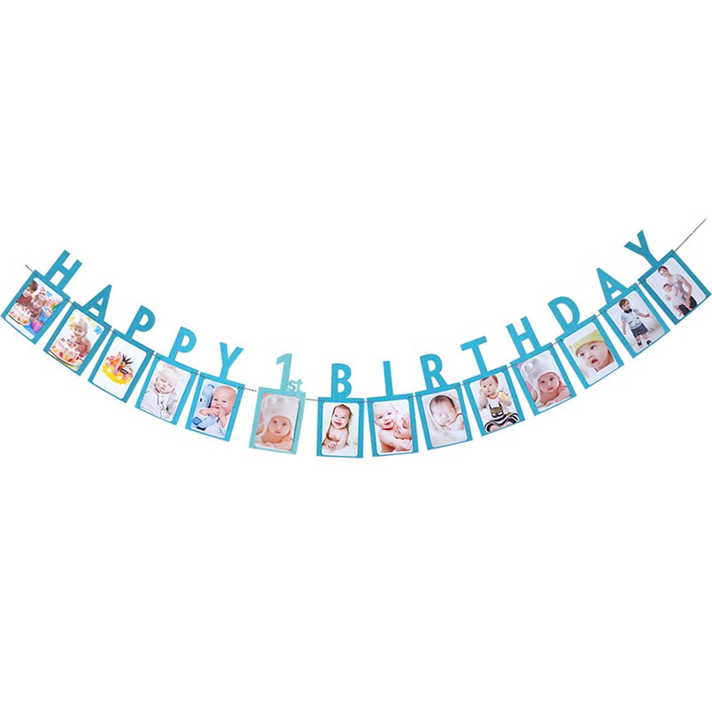 12 Mesi Photo Frame Banner First Happy Birthday Party Decoration Kids 1St Baby Boy Girl One Year Birthday Supplies Baby Shower