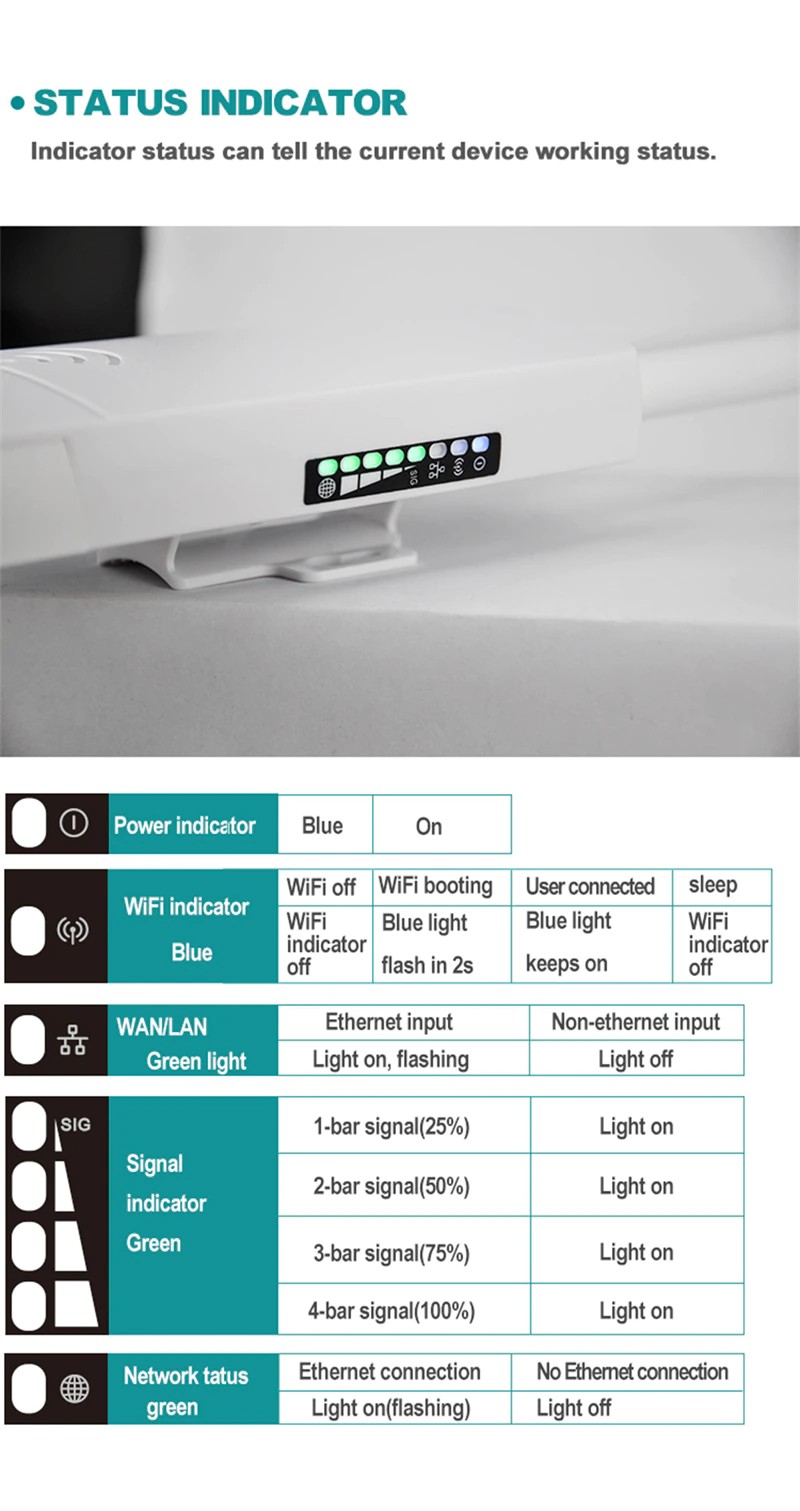 Applicabile alla maggior parte dei paesi in Asia, ad esempio come Israele, Corea Del Sud, India, Kazakistan, sri Lanka, Thailandia, Giappone, Singapore, Indonesia, ecc. CPE905-3: FDD(B1/B3/B7/B8/B20), TDD(B38/B39/B40/B41), WCDMA(B1/B8), GSM(B3/B8).