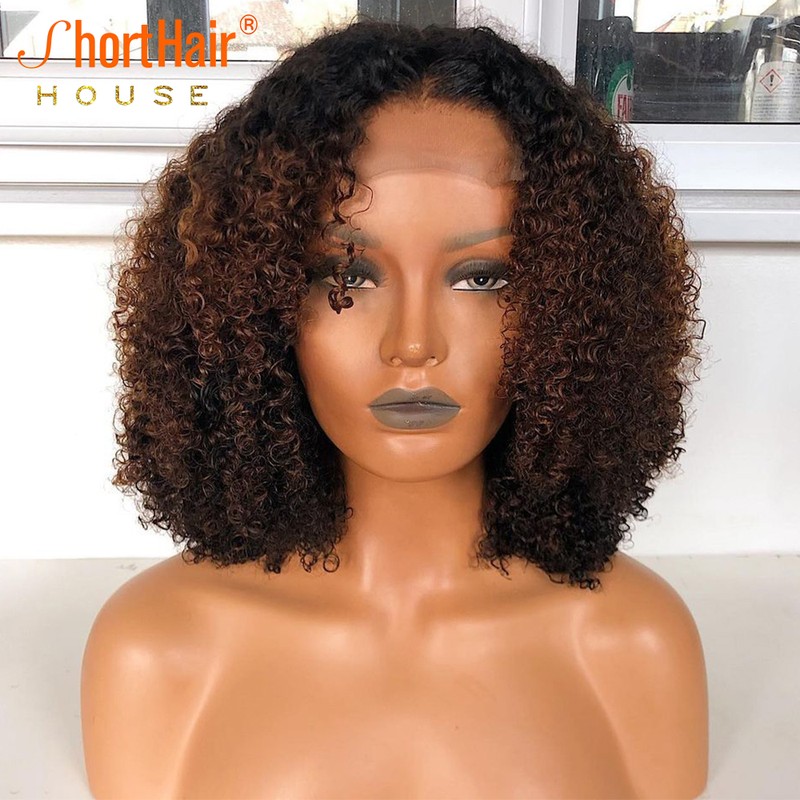 Ombre 1B/30 Parrucche Frontali Corte In Pizzo Riccio Per Donna Parrucca Parte T Parrucca Bob Parrucche Brasiliane Per Capelli Ricci Remy Pre-Pizzicate