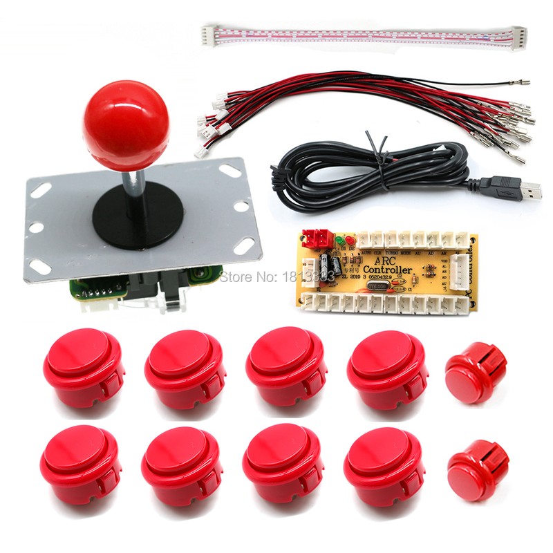 2 Player Copy Sanwa Arcade Kit Fai Da Te Ritardo Zero Controller Di Gioco Da Tavolo Usb Joystick Encoder Per Pc Raspberry Pi Stick Obsf Set Da 30Mm