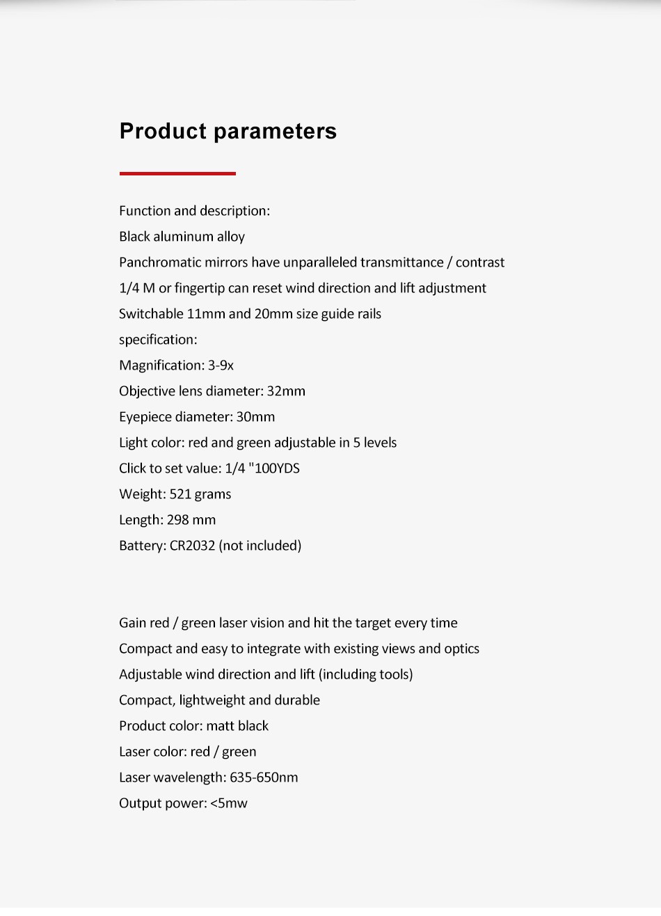 Batteria laser: CR123A (non è incluso per motivi doganali, è necessario acquistarla separatamente)
