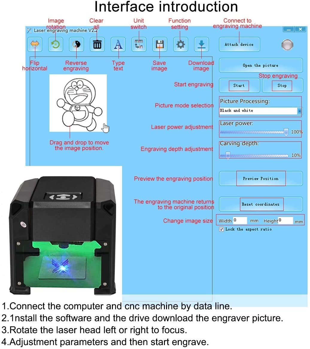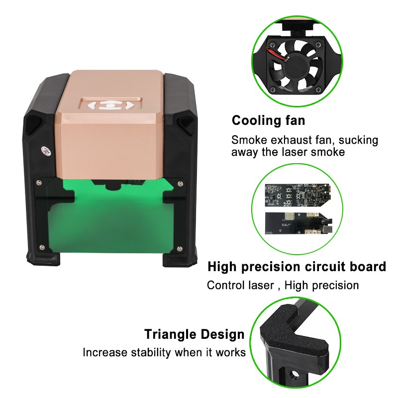 3000 Mw Del Laser Di Cnc Incisore Fai Da Te Logo Marchio Stampante Incisione Laser Macchina Di Lavorazione Del Legno 80X80Mm Incisione Gamma