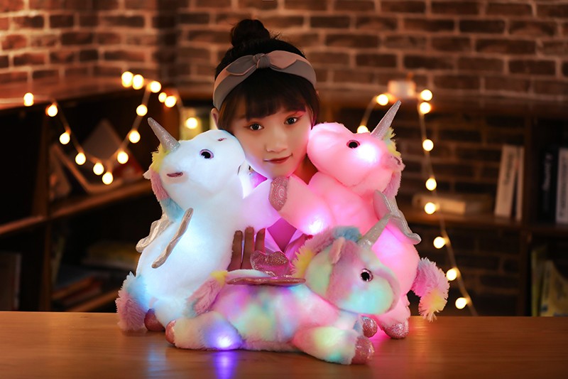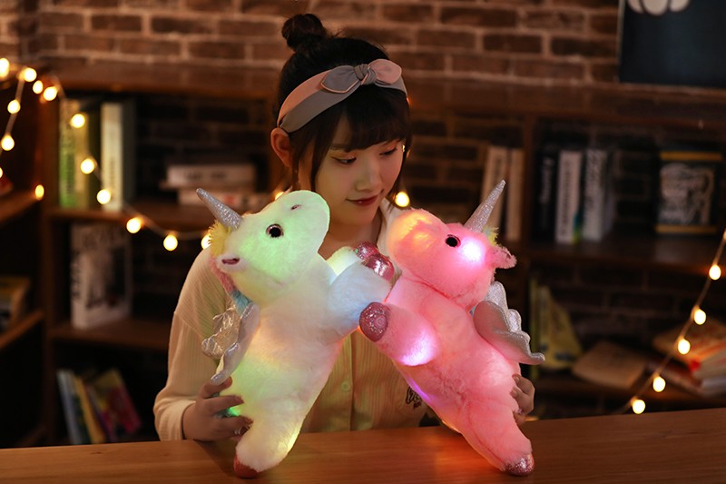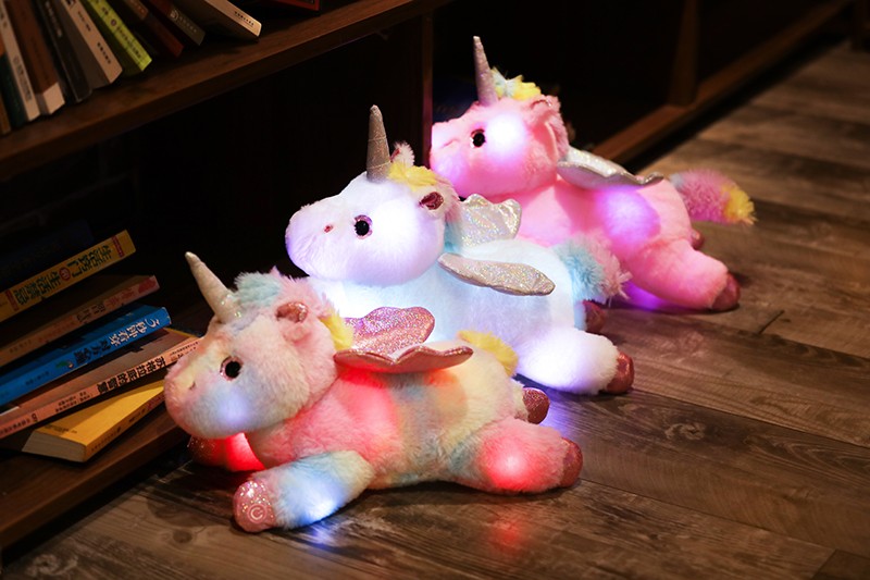 38Cm Colorato Led Unicorno Giocattoli Di Peluche Incandescente Animali Di Peluche Unicorno Rosa Cavallo Giocattolo Carino Illumina Bambola Bambini Ragazze Regali Di Natale