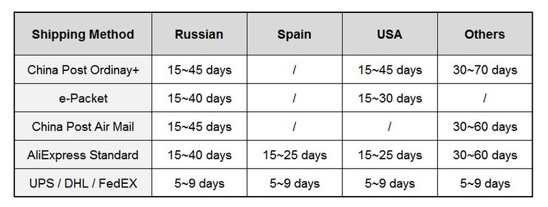 Per 80% paesi, Quando il vostro ordine è sopra i USD 120, noi spediremo viaVeloce EspressoCome ad esempio DHL |