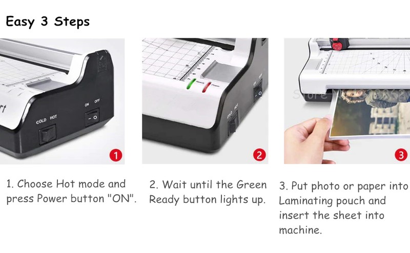 Plug-in, attendere per 3-5min di preriscaldamento, e godere di incredibile di laminazione velocità di 300 millimetri/min.