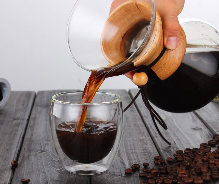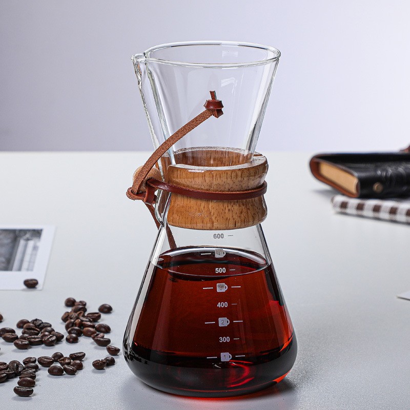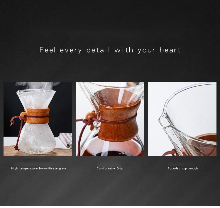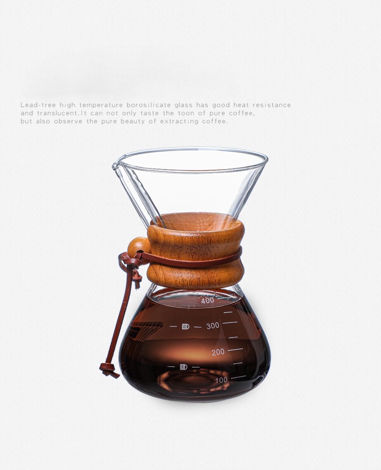400Ml 600Ml 800Ml Vetro Resistente Bollitore Per Caffè Filtro In Acciaio Inossidabile Gocciolatore Anti-Scottatura Manico In Legno Birraio Pentola Barista Strumenti