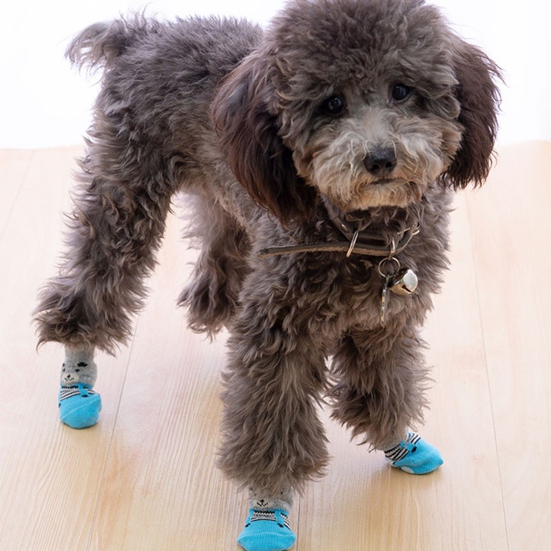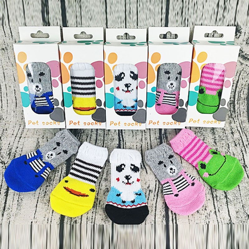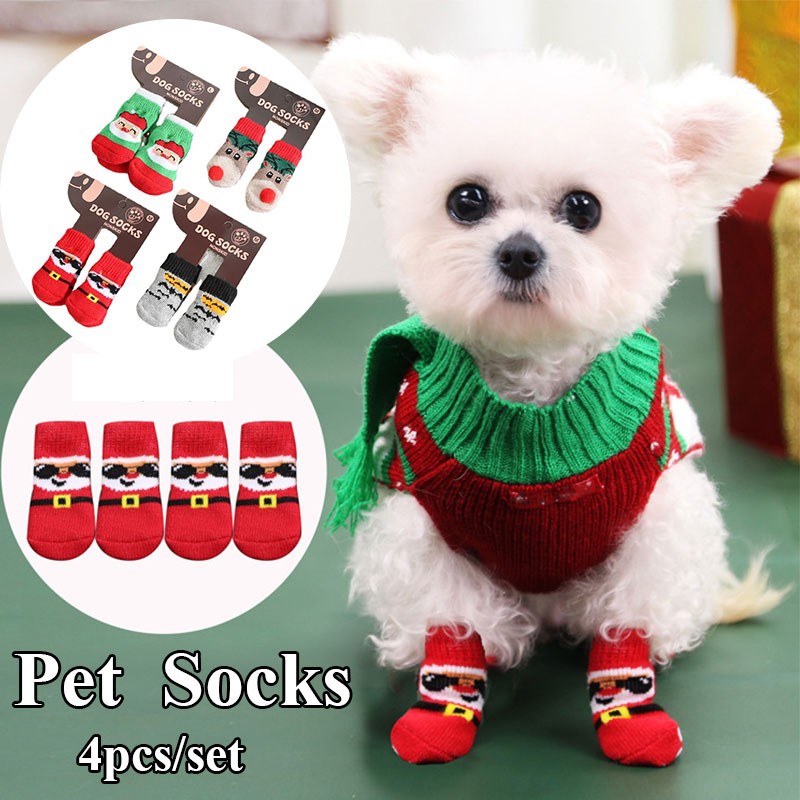 4 Pz/Set Autunno Inverno Calzini Per Cani Da Compagnia Antiscivolo A Maglia Per Cani Di Piccola Taglia Scarpe Spesse Calde Zampa Protettore Simpatico Cucciolo Gatto Abbigliamento Da Interno Stivale