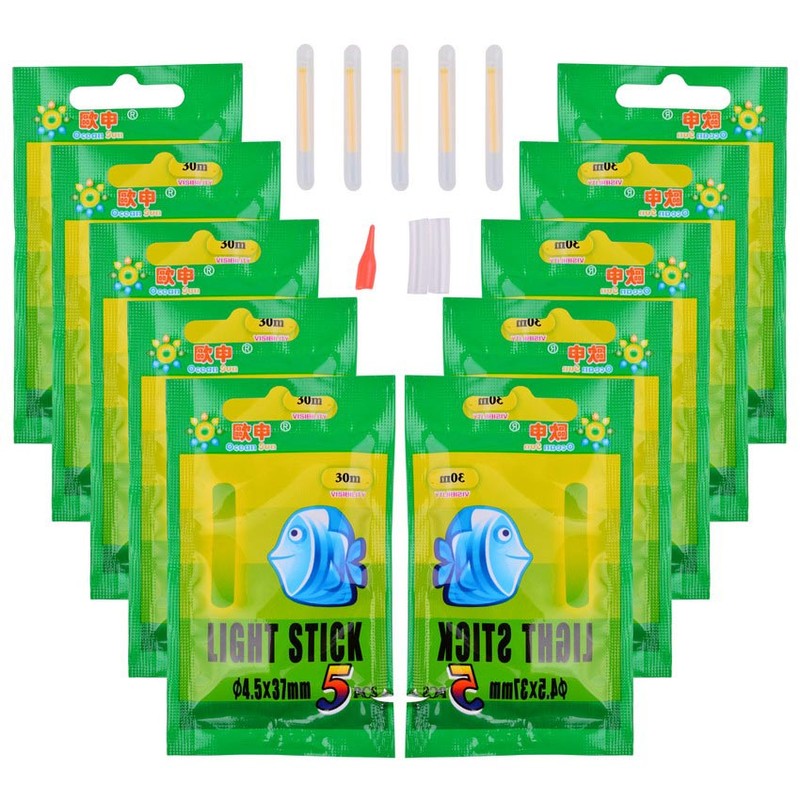 50PCS galleggiante da pesca Light Stick fluorescente Lightstick Night Float Rod Light Dark Glow Stick utili lotti attrezzatura da pesca 37*4.5mm
