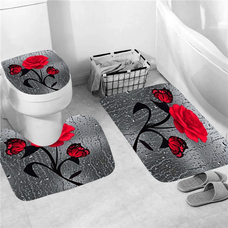 5 Colori Rose Print 3D Tenda Da Doccia Tenda Da Bagno In Poliestere Impermeabile Tappetino Bagno Antiscivolo Set Tappeti Da Toilette Tappeto Decorazioni Per La Casa