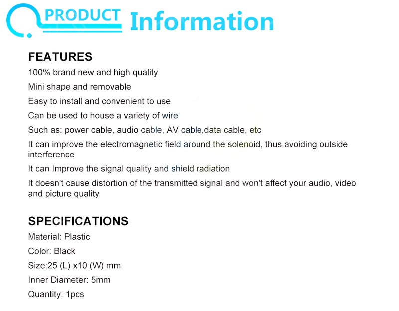 Numero modello: anello ferrite a clip da 5 mm