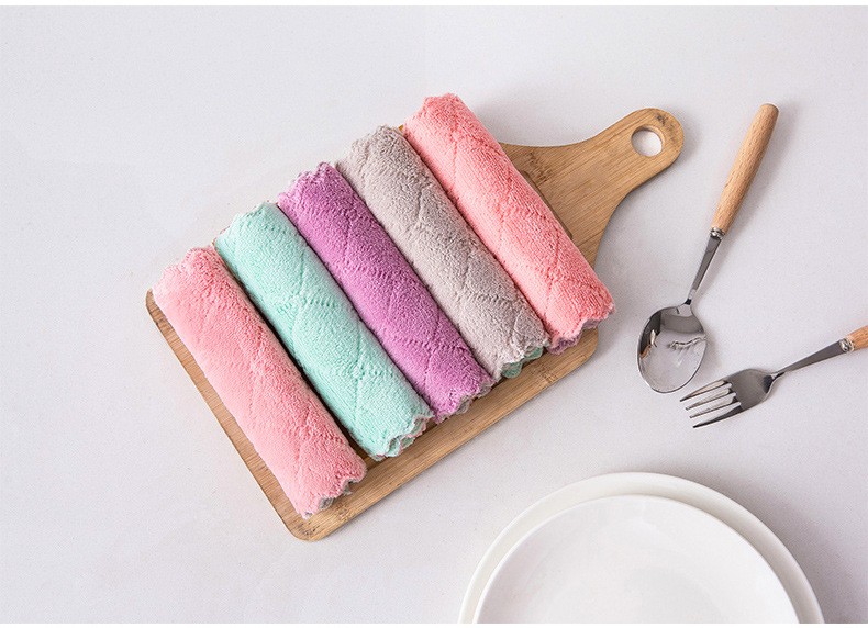 5Pcs Panno Da Cucina In Microfibra Assorbente A Doppio Strato Panno Antiaderente Olio Panno Per La Pulizia Della Casa Asciugamano Asciugamano Strumento Per La Casa