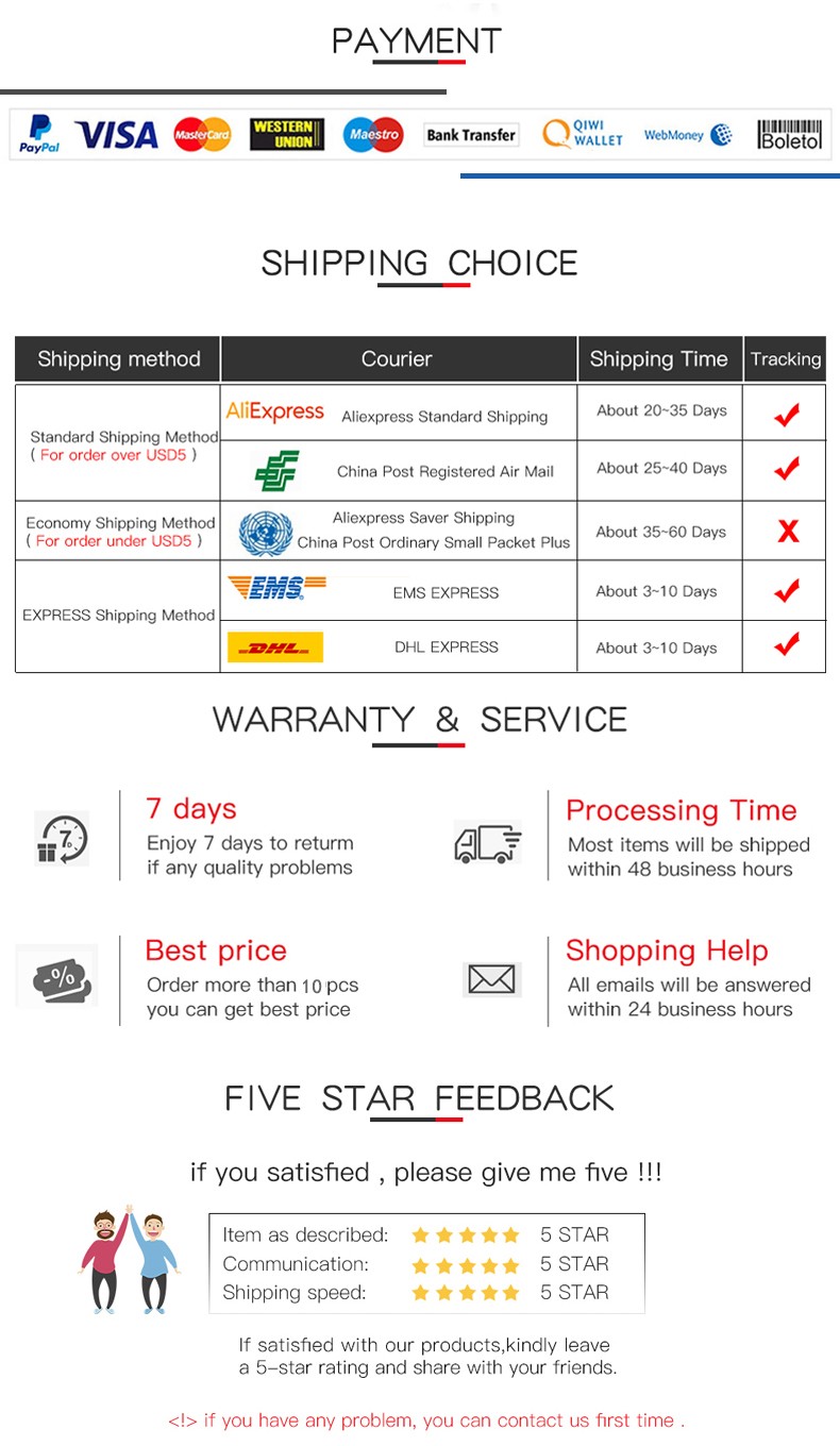 3. A causa di trasporto, l'articolo può danneggiare in transito, se il danno dell'articolo, pls in contatto con noi in primo luogo immediatamente prima di lasciare le risposte, grazie per la vostra comprensione.