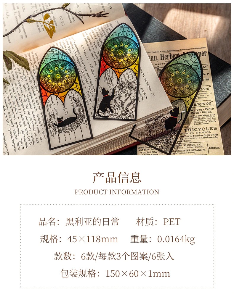 6 Pz/Set Cute Black Cat Daily Series Segnalibro Pvc Matte Reading Book Mark Retro Book Page Marker Forniture Di Cancelleria