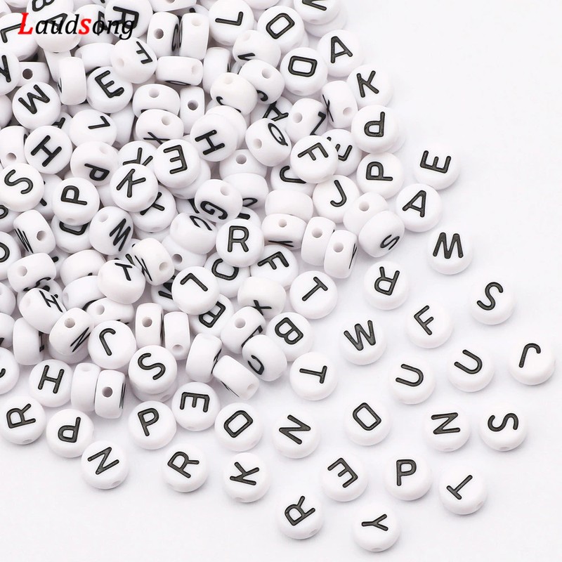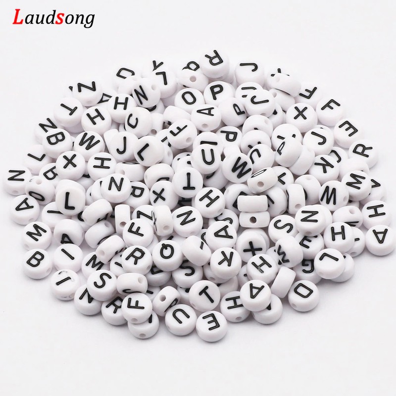 7Mm Nero Bianco Misto Lettera Acrilico Perline Tonde Piatte Alfabeto Distanziatore Perline Per Gioielli Che Fanno Collana Braccialetto Fatto A Mano Fai Da Te