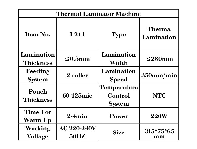Laminato Dimensioni: 230mm(A4size)