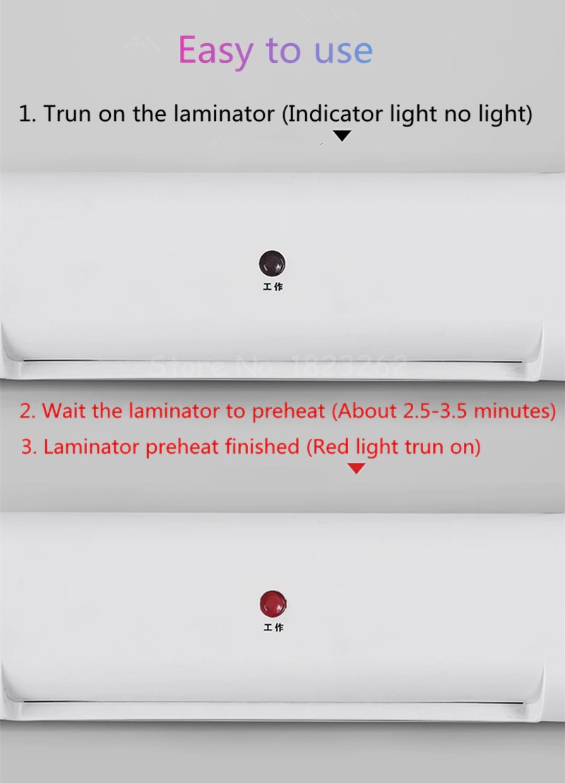 2. Attendere il laminatore per preriscaldare (Circa 2.5-3.5 minuti)