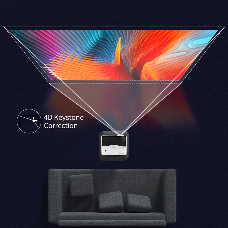 Il proiettore è dotato di 4d correzione della distorsione trapezoidale, è possibile regolare la foto per il più adatto angolo. Non c' è bisogno di mettere la posizione del proiettore.
