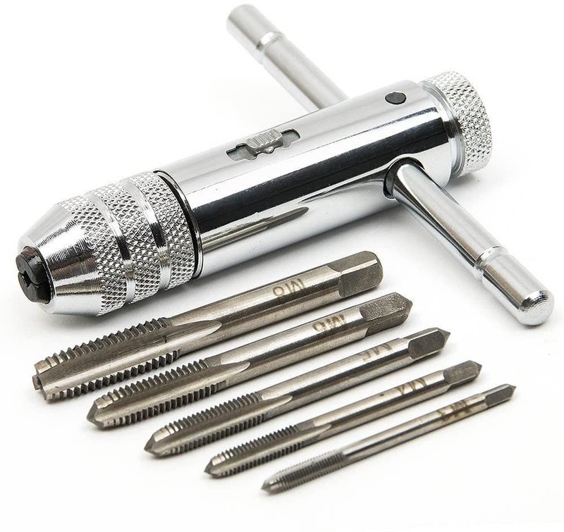 Pacchetto incluso: chiave a cricchetto regolabile con impugnatura a T da 1 pezzo + 5 pezzi di rubinetti (1 pz M3; 1 pz M4; 1 pz M5; 1 pz M6; 1 pz M8)
