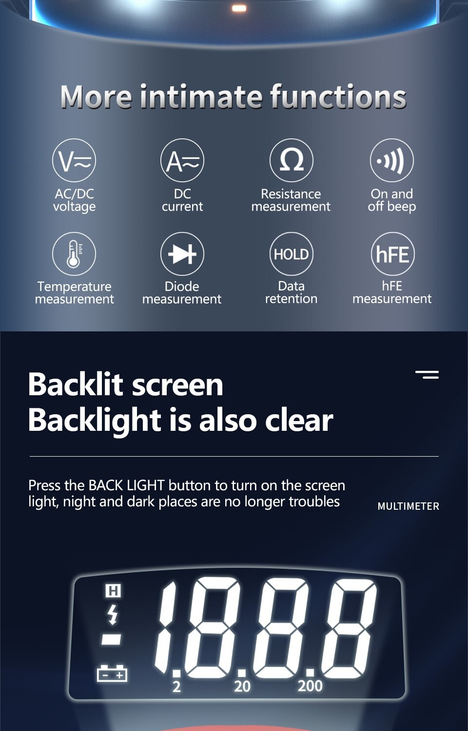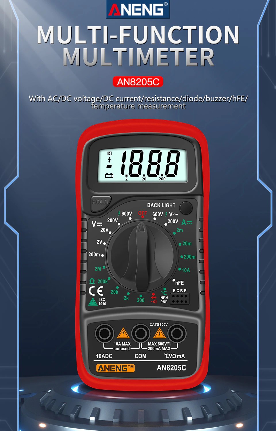 Aneng An8205C Multimetro Digitale Ac/Dc Amperometro Volt Ohm Tester Multimetro Con Termocoppia Lcd Retroilluminazione Portatile