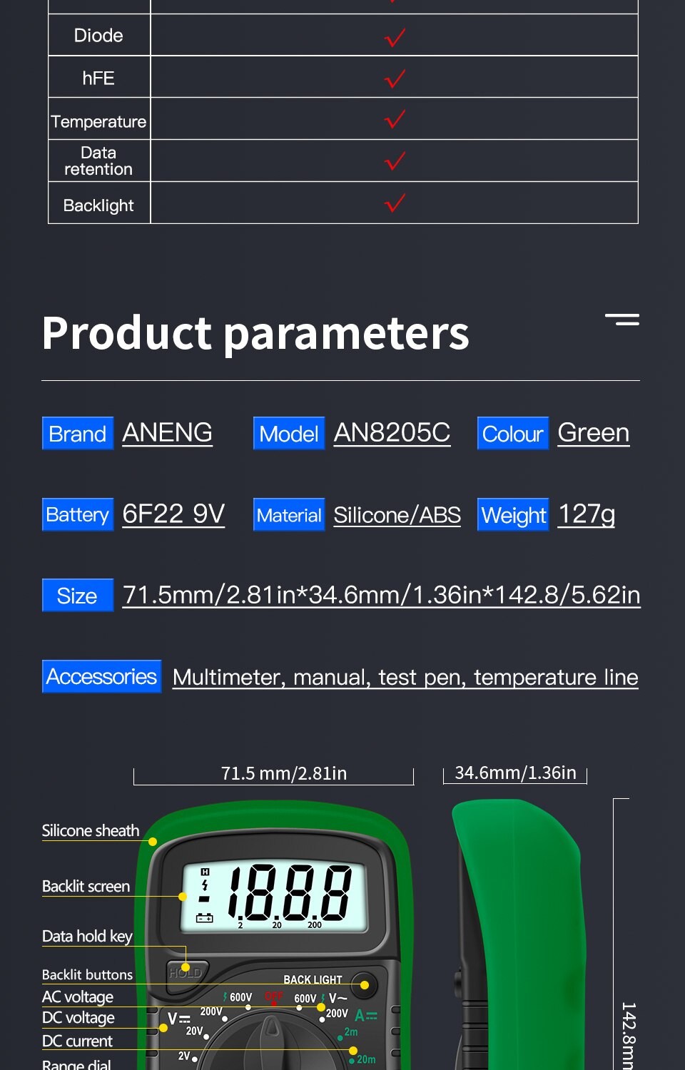 1 x ANENG AN8205C Multimetro Digitale (Batteria non è inclusa)