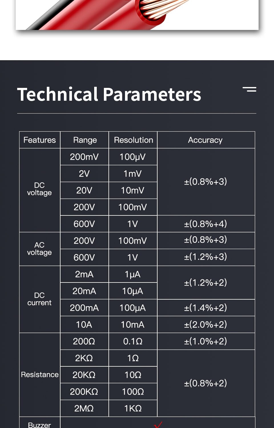 DC tensione: 200mV - 2-20-2000-600v più o meno 0.5%