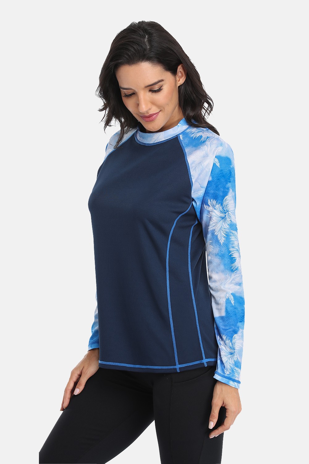 Anfilia delle Donne Manica Lunga Rashguard Retro Stampa Floreale della Camicia ad asciugatura rapida Surf Top Camicie Da Trekking Protezioni UPF50 + T-Shirt