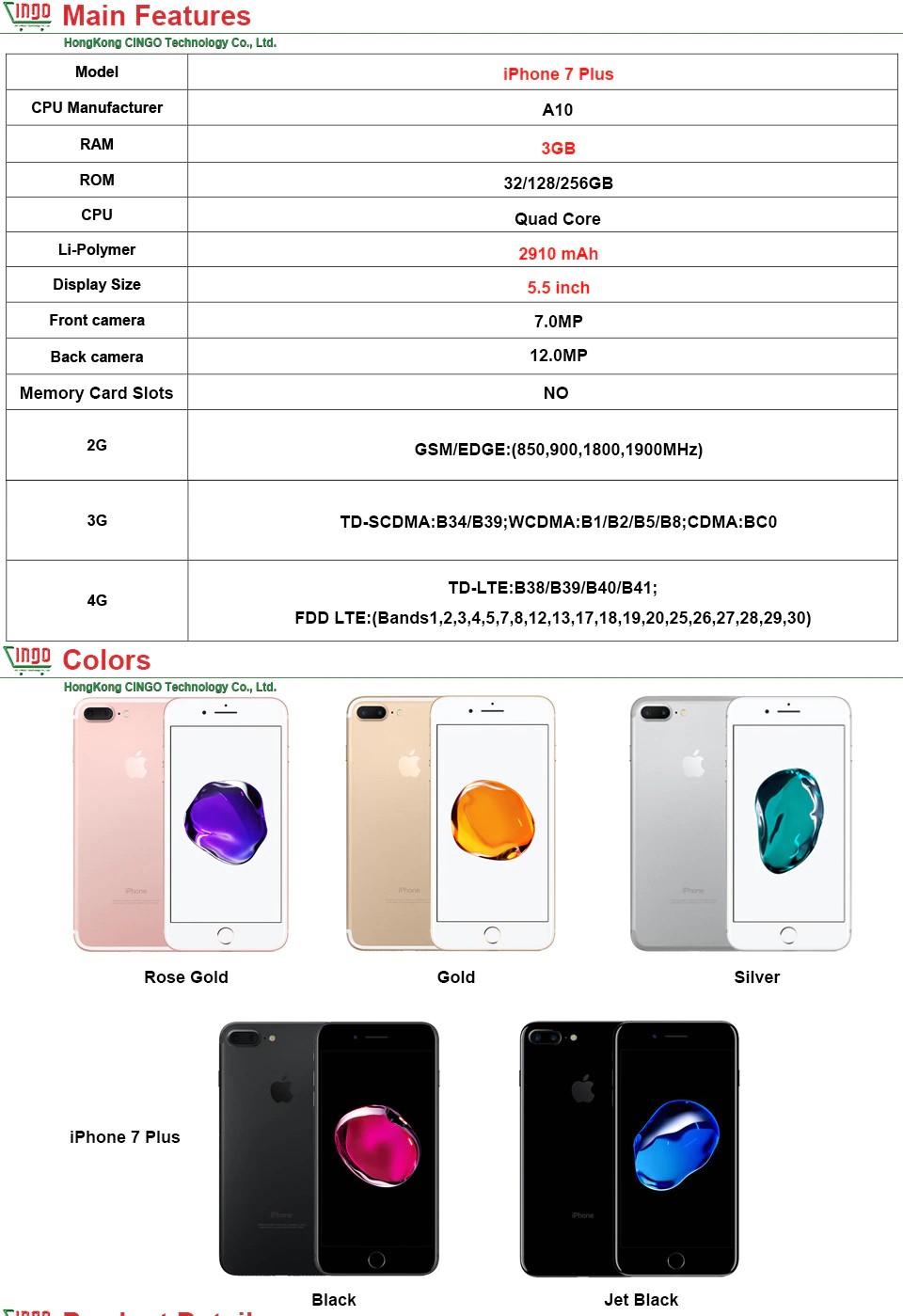 Apple Iphone 7 Plus 3Gb Ram 32/128Gb/256Gb Ios Cellulare Lte 12.0Mp Fotocamera Apple Quad-Core Fingerprint 12Mp 2910Ma